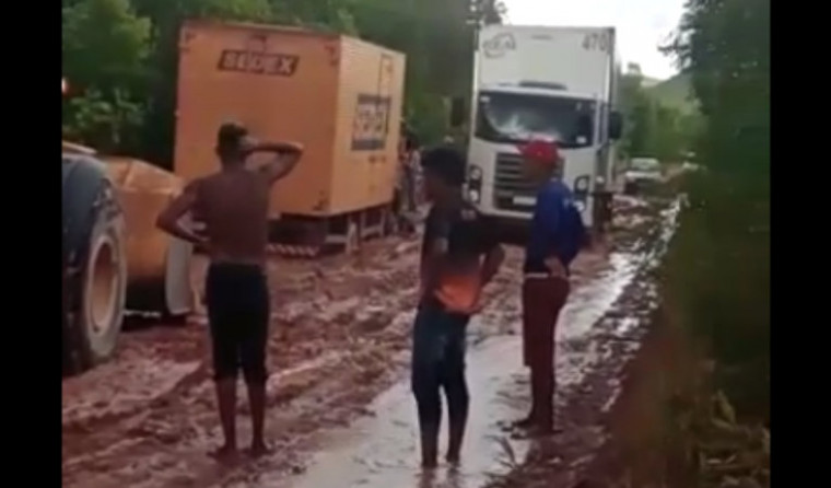 Imagens gravadas na manhã desta quinta-feira (13/01) em um dos pontos mais críticos da rodovia mostram vários veículos atolados em um lamaçal gigante. Uma máquina pesada estava no local desatolando caminhões. No vídeo, motoristas relatam que até uma retroescavadeira teria ficado no atoleiro.