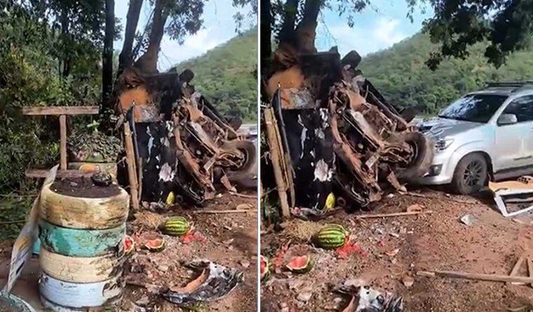 Caminhonete carregada de melancias perde freio em serra, atinge veículos e deixa dois mortos
