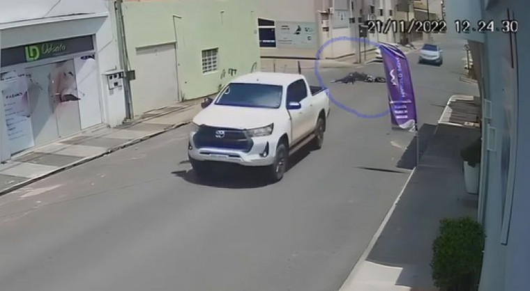 Caminhonete passa por cima de moto após batida e condutor foge sem prestar socorro; vídeo