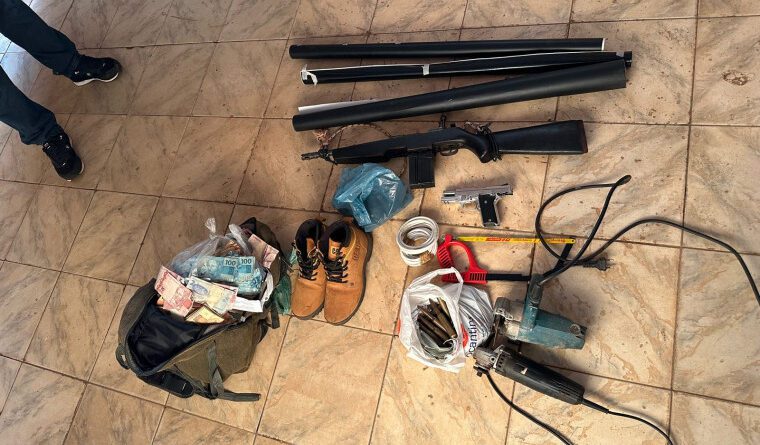 Com o casal foram encontrados e apreendidos: um fuzil calibre .762; munições de .762 e de .50; uma pistola calibre.9mm; explosivos; grande quantidade em dinheiro, provavelmente oriundos de recentes roubos a banco; uma caminhonete utilizada nos assaltos; e equipamentos eletrônicos. O material será periciado para comprovar a origem e instruir as investigações em curso.